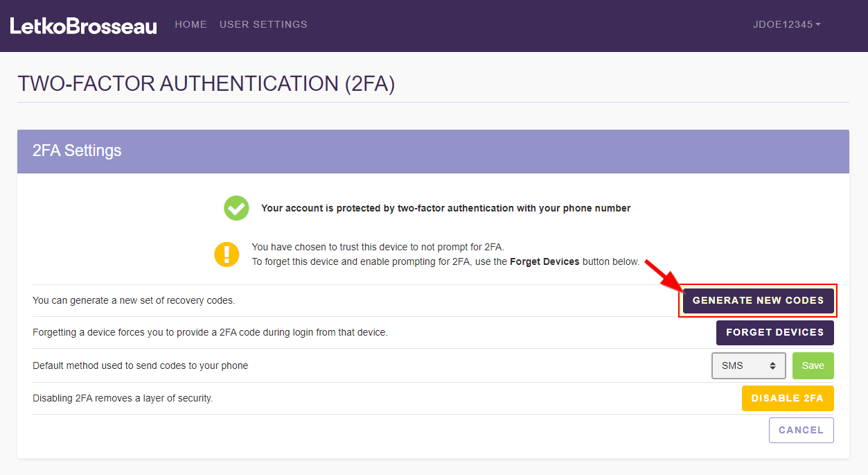 STEP 3: Click on "Generate new codes"